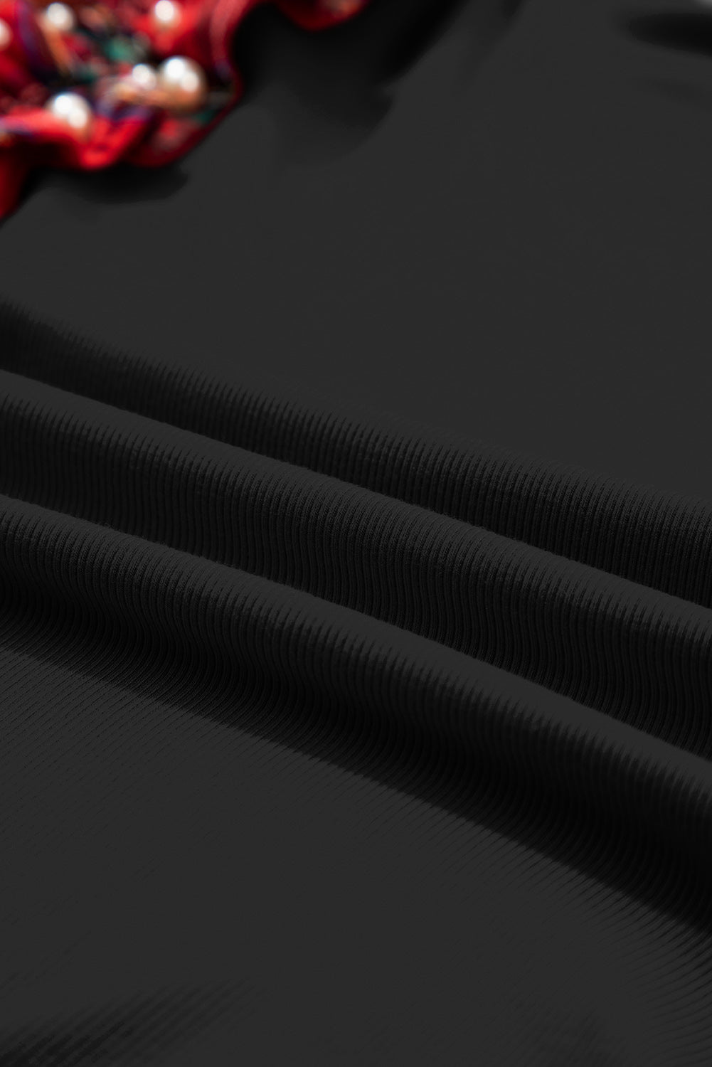 Black Plaid Pearl Ruffle Short Sleeve Loose T Shirt
