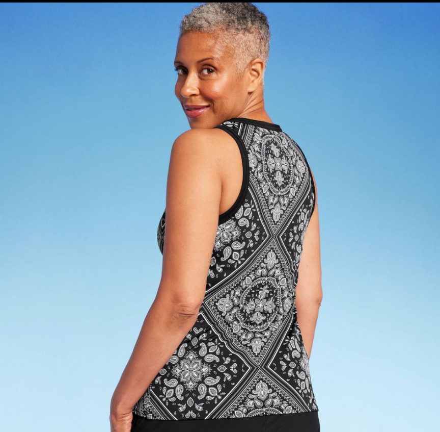 Lands' End Women's High Neck Tankini Top Swimwear, UPF 50Bandana Print XS. #A80