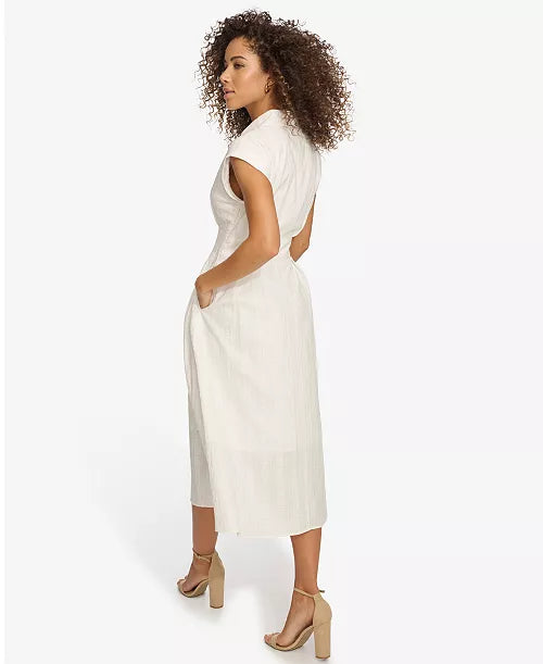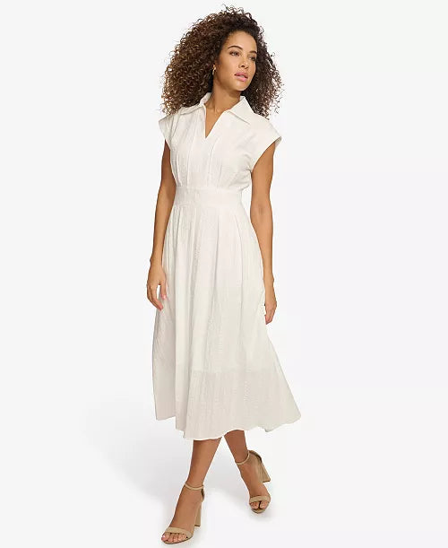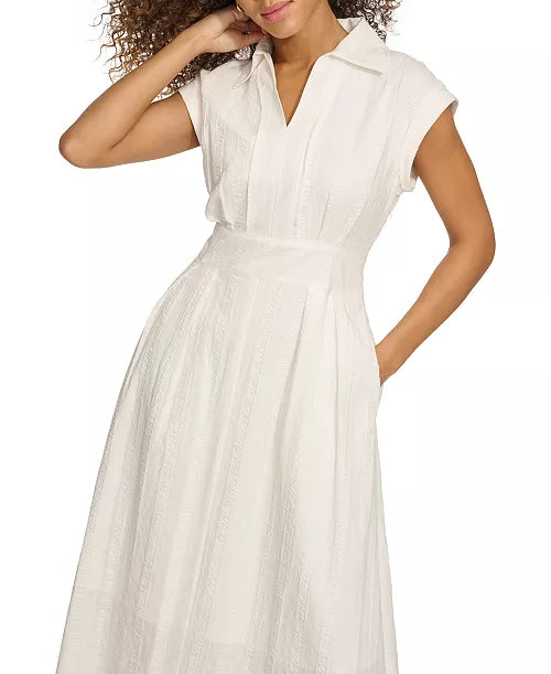 NWTs, Kensie, Women's Textured-Stripe Collared Midi Dress. Size 2. #97 100% cotton