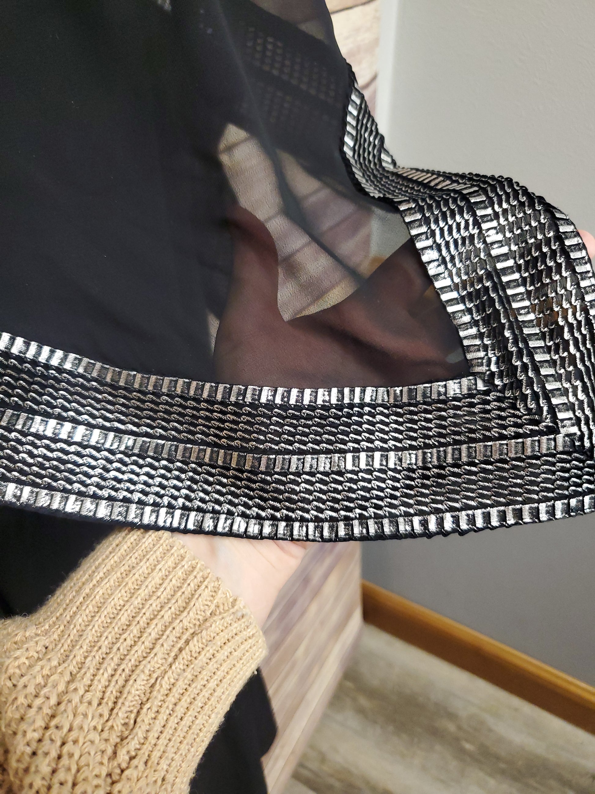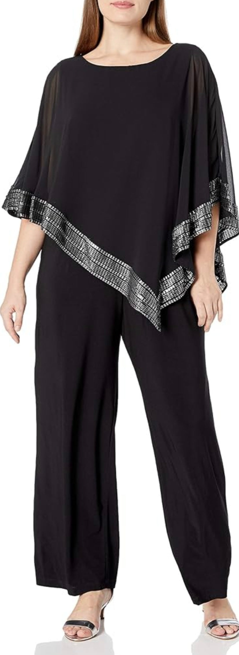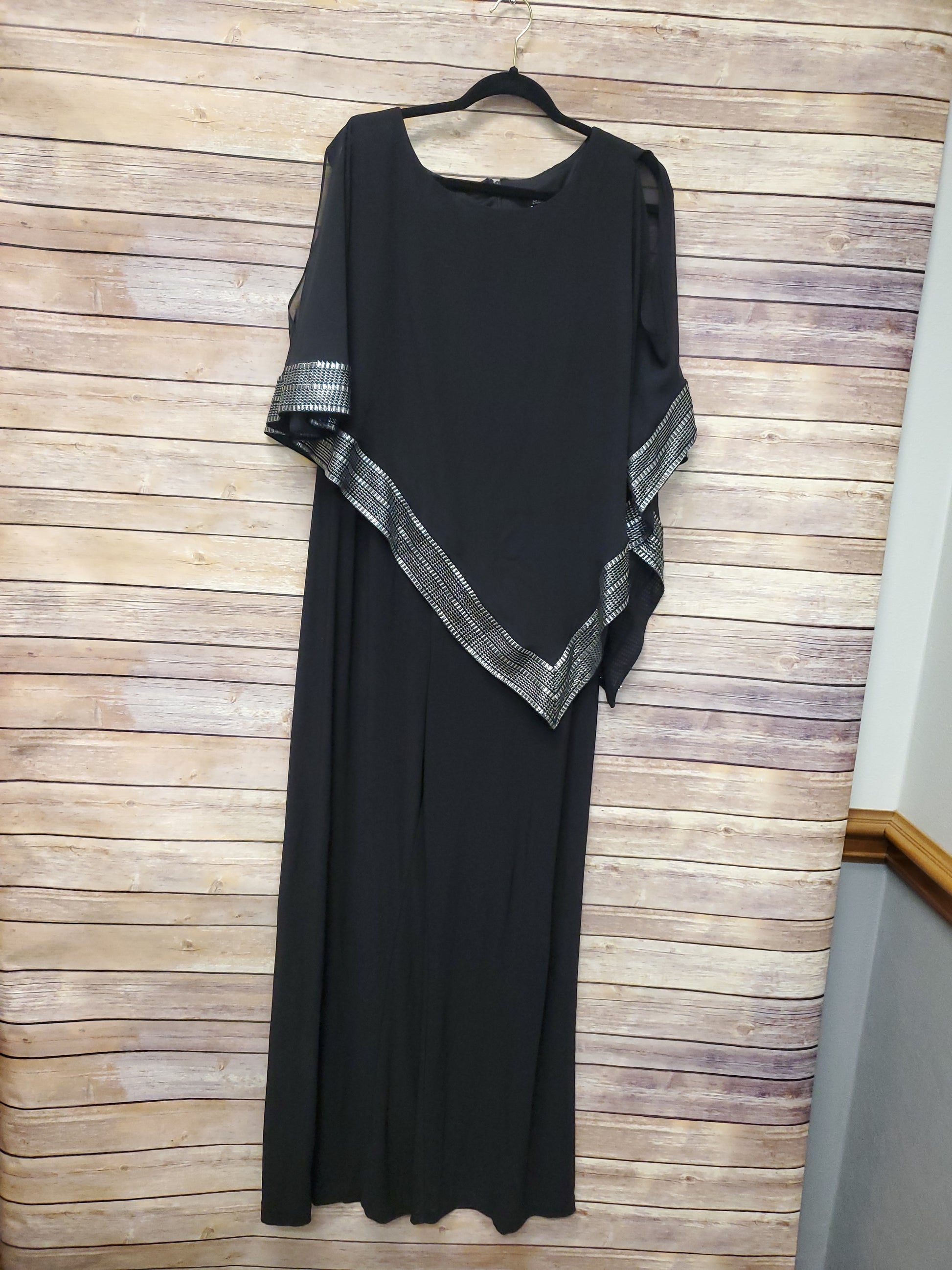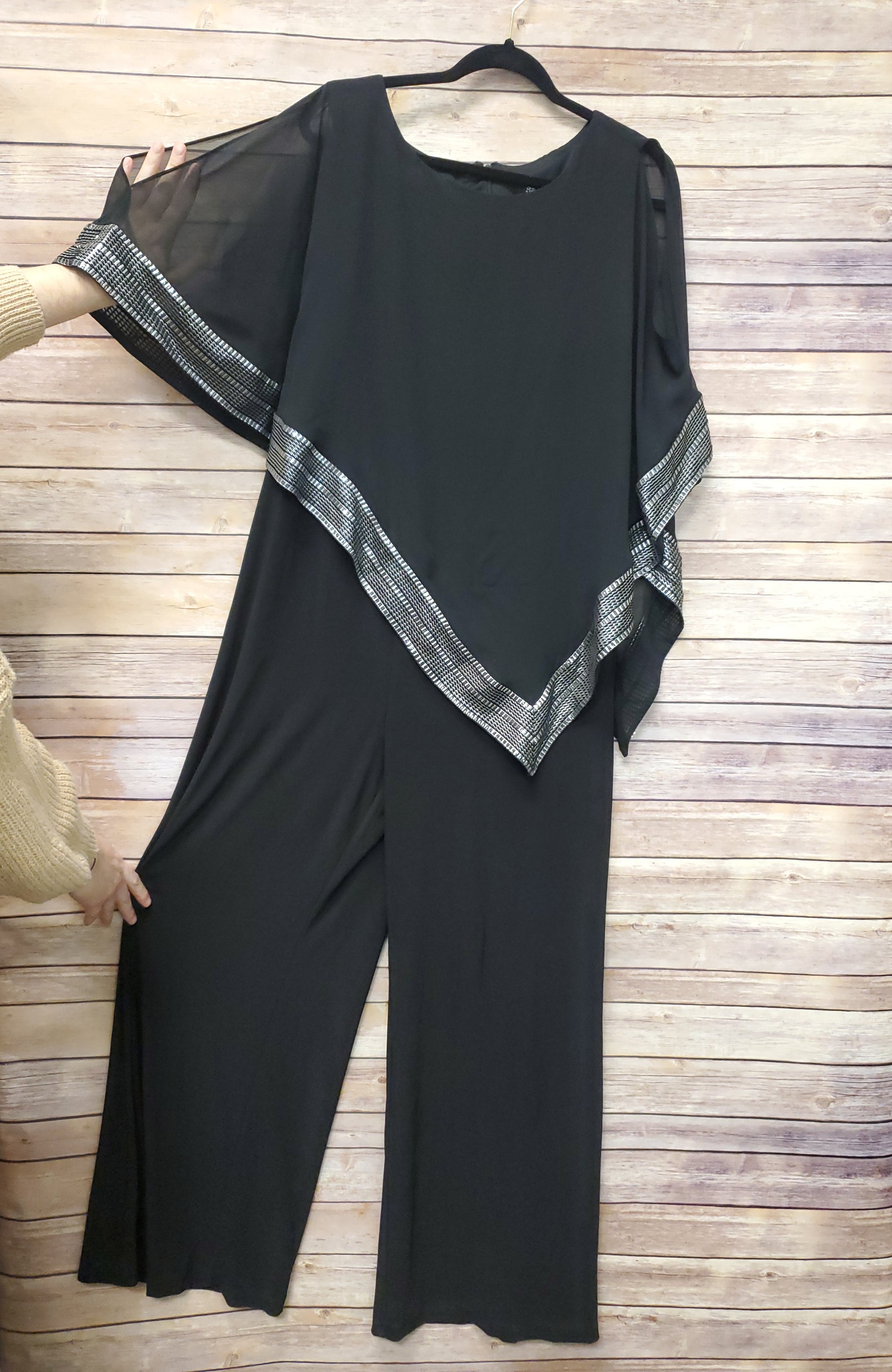 SLNY Black Jumpsuit w/ Silver Lined Cape. Size 14. RS 98